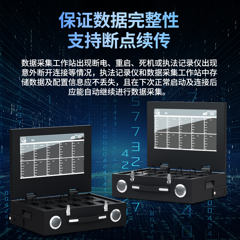 b)支持采集过程断点续传:数据采集工作站出现断电、重启、死机或执法记录仪出现意外断开连接等情况,执法记录仪和数据采集工作站中存储数据及配置信息应不丢失,且在下次正常启动及连接后应能自动继续进行数据采集